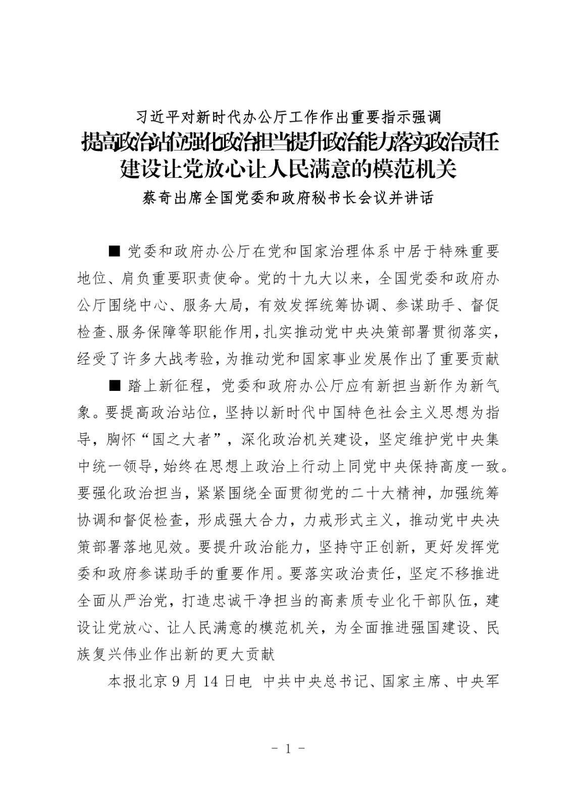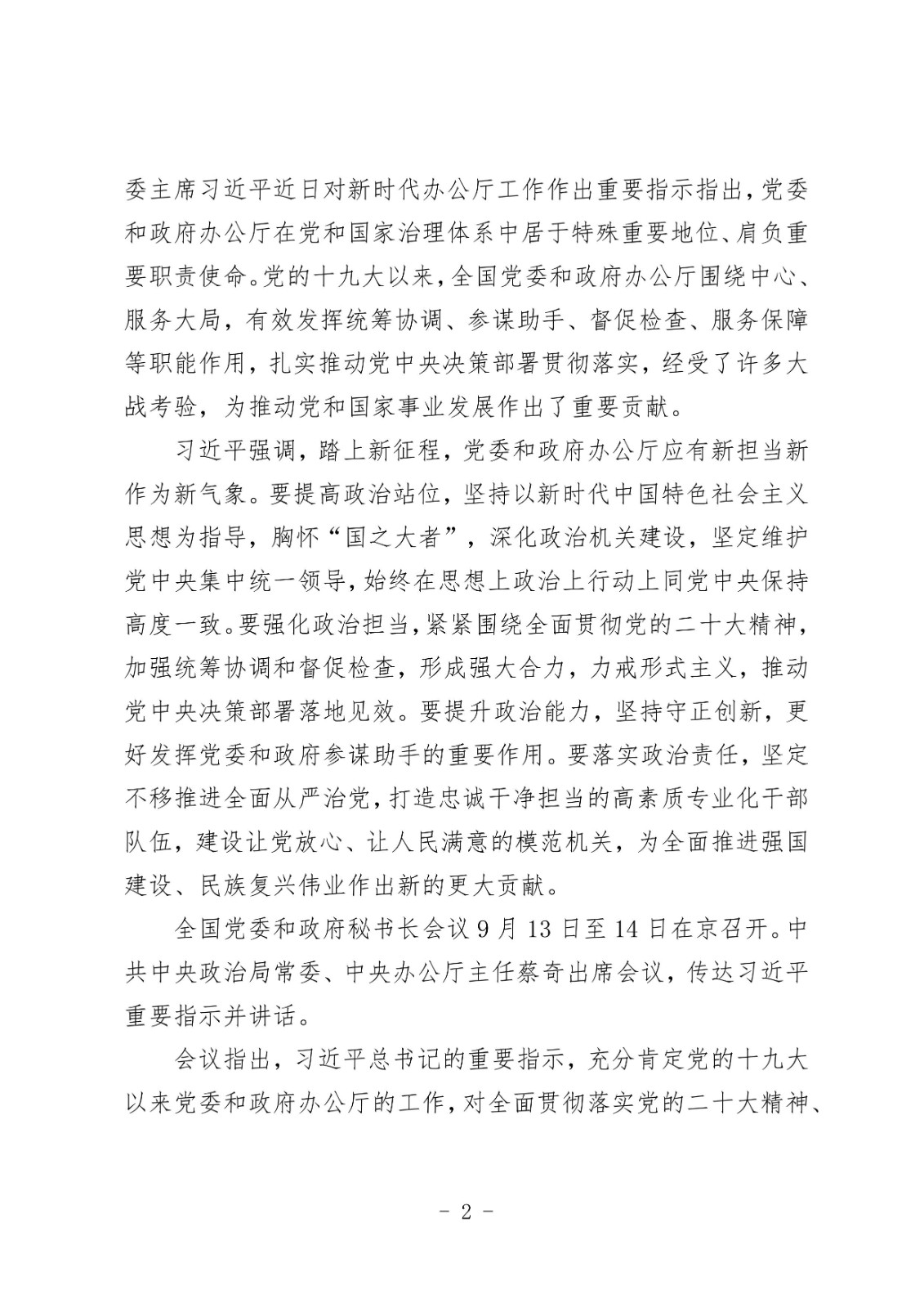 習近平對新時代辦公廳工作作出重要指示