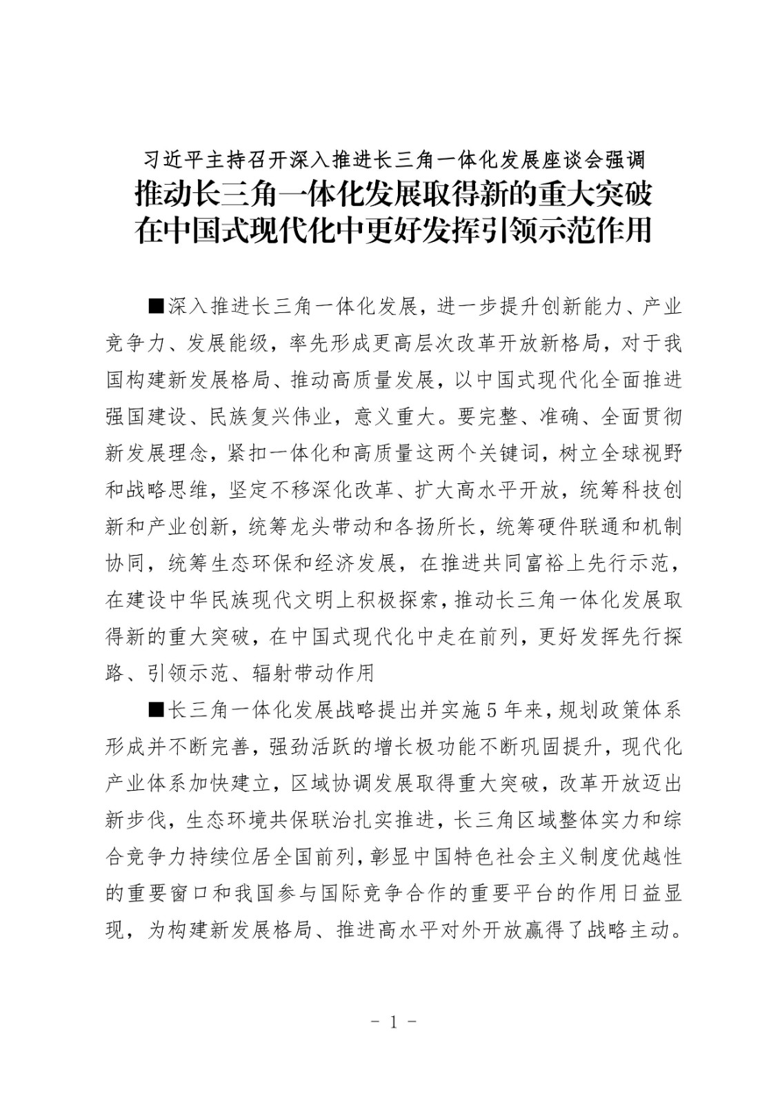 習近平主持召開深入推進長三角一體化發展座談會